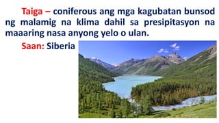Ang taiga ay coniferous ang mga kagubatan bunsod ng malamig na klima dahil sa presipitasyon na maaaring nasa anyong yelo o ulan. July 21 2014 at 428 AM. Kolonisasyon Ng Mga Bansa Sa Asya November 2019 83.
